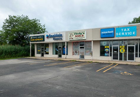 That the suburbia of Cheever, and the strip malls of Michigan City, can nonetheless feel drab, depressing, and empty, rather than being the gift horse those in the past would have seen them as, is precisely what I write about over and over and over.