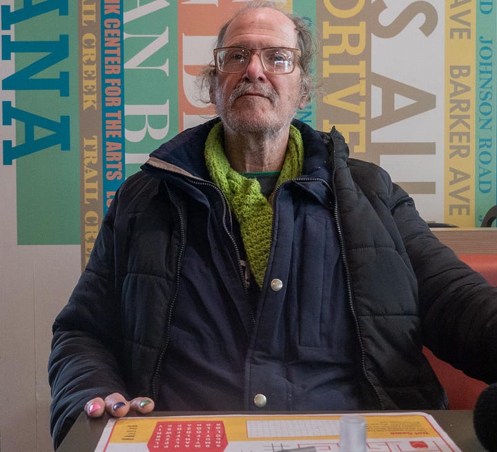 The other regulars live more traditional lives. There is the pre-teen daughter of an employee who, when school is out, sits for the entire morning shift in a corner booth, dressed in going-out-of-the-house PJs, watching videos or playing on her phone while her mom works. There are DoorDash delivery guys who cluster around the Pick Up counter, trying to leverage their wages with FanDuel. The contractor with his three screens (laptop, phone, tablet) snaking into the outlet, contracting more jobs. The well-put-together elderly woman with her book and her brand-new leopard-skin pill-box hat, who I had to tell how pretty she looked.