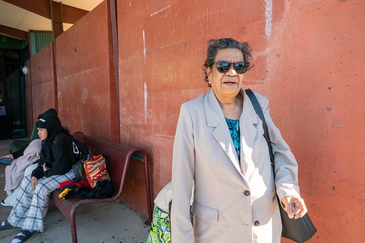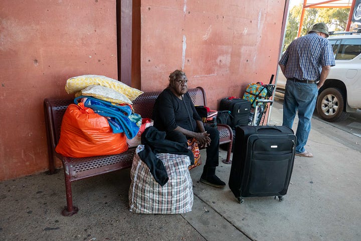 As for Gloria, I know less about her backstory, since she wasn’t one to talk about herself much. Everyone in Mount Isa seemed to know her, and for the hour I sat waiting with her to get back on the bus, almost everyone who passed by came to talk to her, or in one case, pray with her for a safe return in a few months.